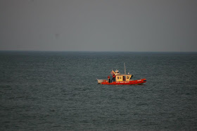 Launching rescue 34 at the foot of bay avenue and coming around  and out into the ocean for the run down the beach to Mount street in Bay Head. We got our tow lines set up and we got the divers in the water and headed south for Mantoloking. Keep in the depth range of eight to ten feet as this is the area that swimmers would be in at low tide.